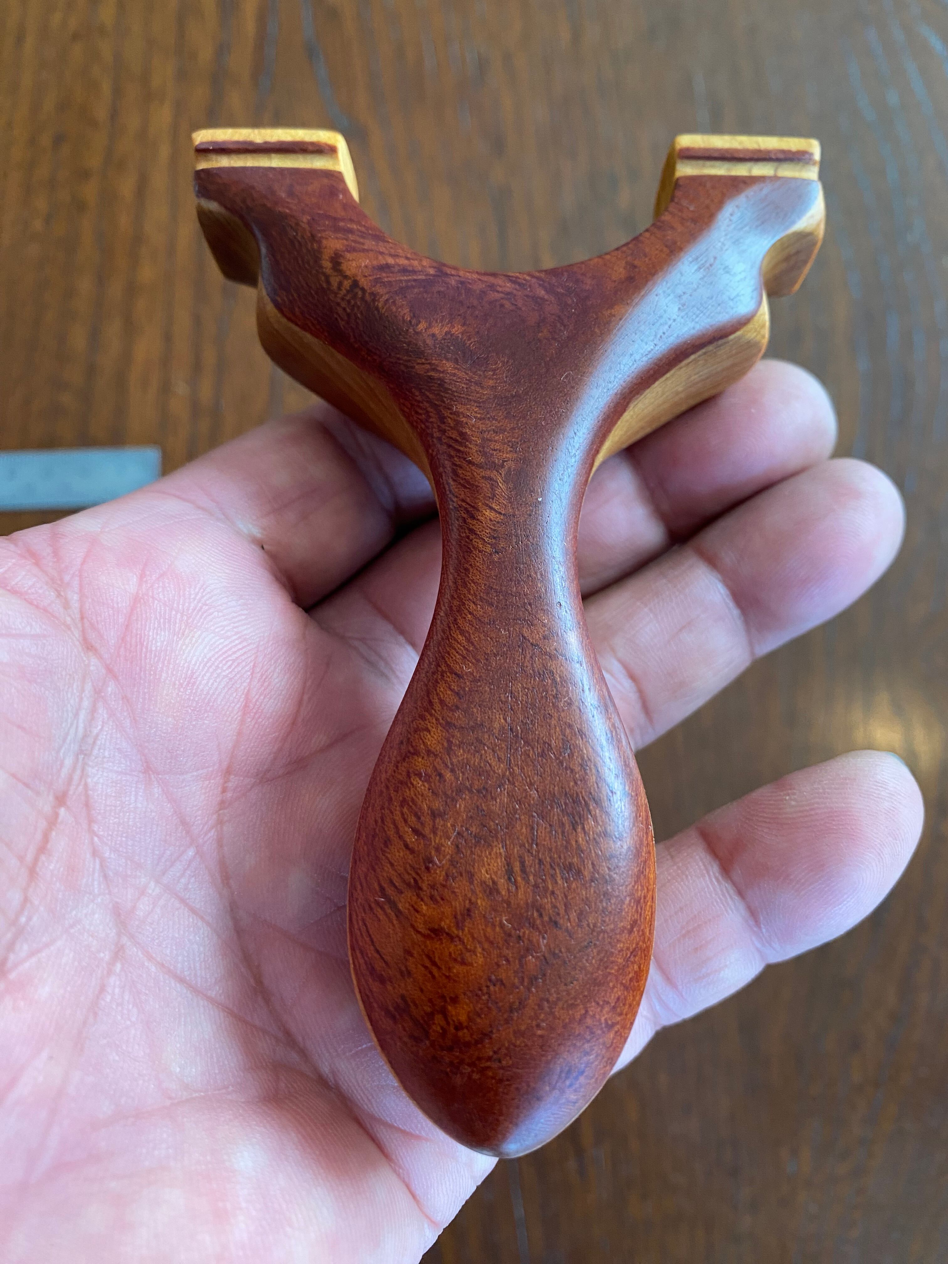 No.583 初心者用コンパクト スリングショットは、小型薄型設計で手軽に持ち運べる魅力的なアイテムです。表面には美しい欅杢が施されており、気品溢れる印象を与えます。特に女性の手にもフィットするデザインで、使いやすさを追求しています。また、男性のサブ機としても最適なサイズ感が魅力で、幅広いユーザーにご満足いただけるでしょう。