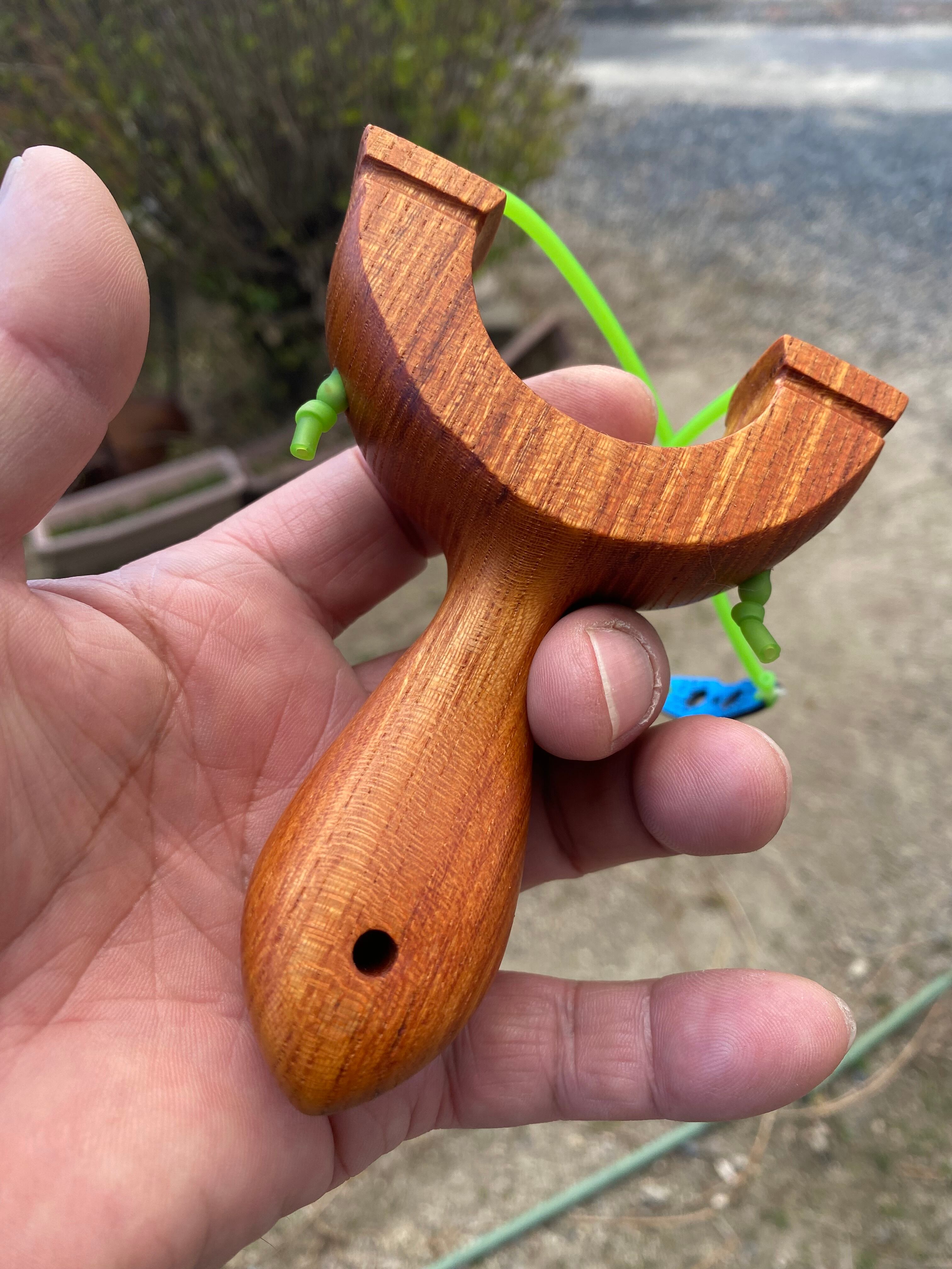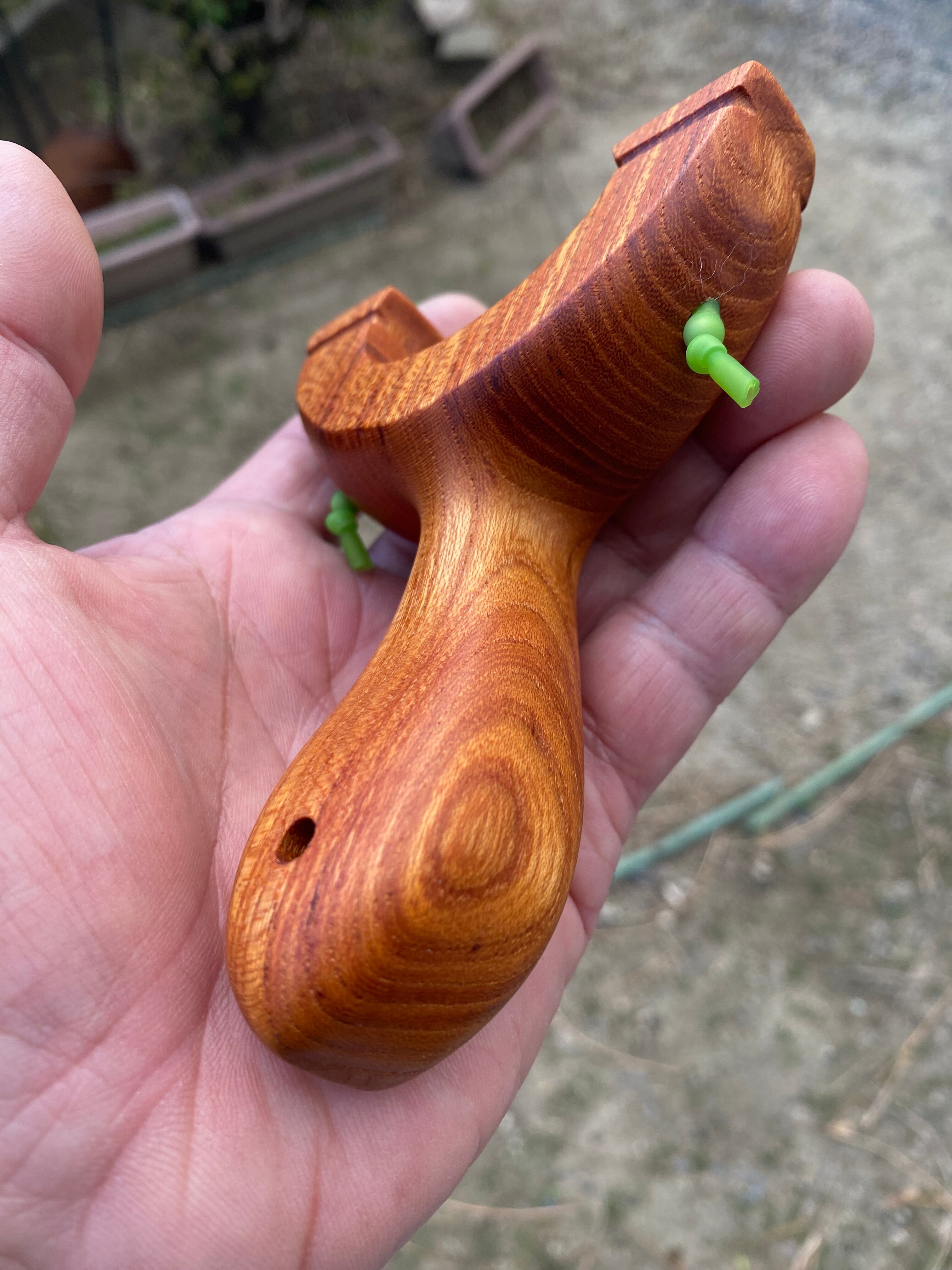 このスリングショットは、ビギナーから上級者まで幅広い層にご満足いただけるアイテムです。しっかりとホールドできるフォークの設計は、力強い射撃を実現します。自然の美しさを纏ったケヤキの質感も、使い込むごとに愛着が沸くことでしょう!