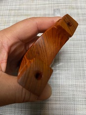 ちょうど良いサイズのスリングショットです。奥深くまで中指を送り込むことができるため、安定したホールド感を提供します。このNo.614は、613と同じGZKの1632の丸ゴム管+ブラポーチを装着予定で、引き絞った時のフィーリングは格別なものとなることでしょう。ケヤキのしっとりとした感触と相まって持つ人の喜びを演出します。