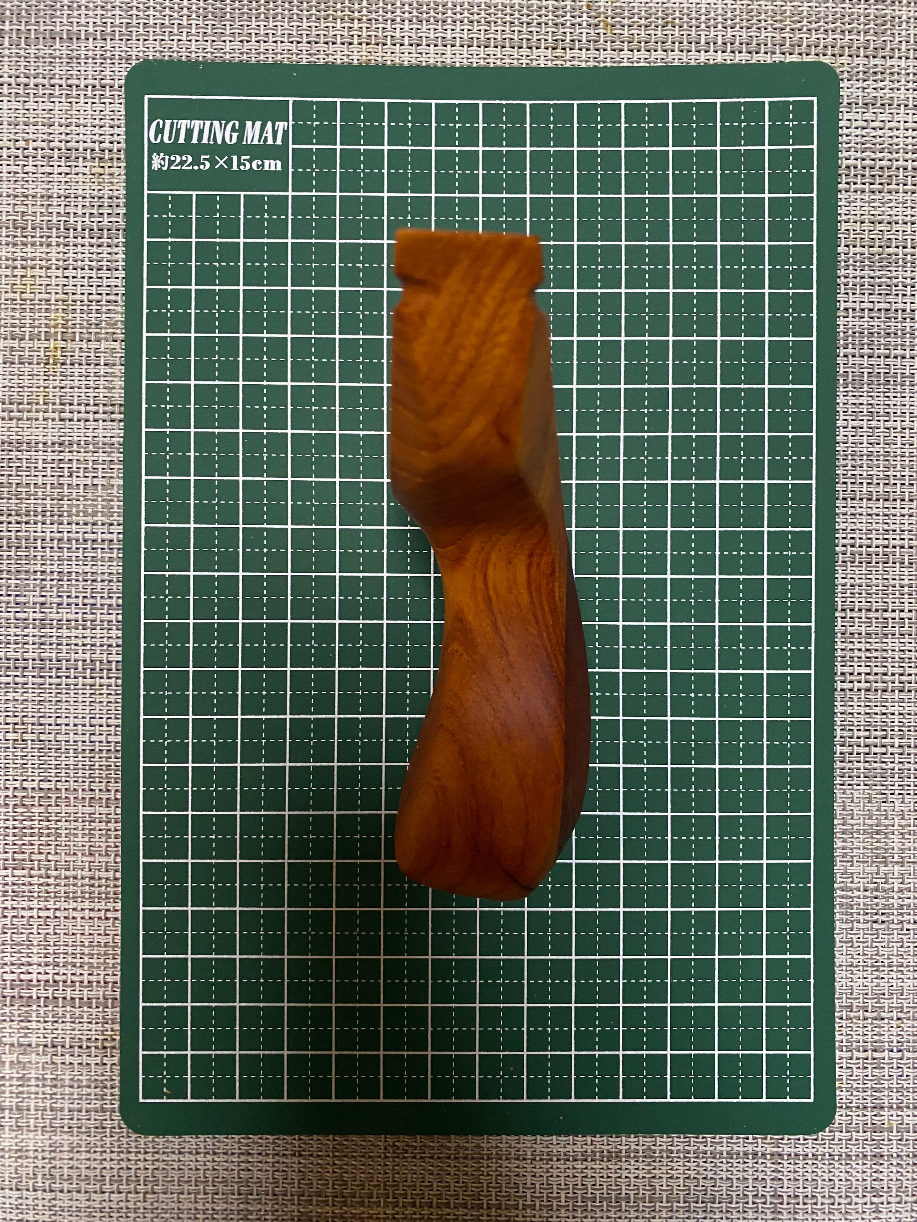 新たな魅力を引き立てるNo.624は、デザイナー庵野吽の設計図をベースに、10%縮小した老若男女万人向けのリファインモデルです!欅の柾目を本体に使用し、表面には美しい赤欅の杢をしっかりと貼り付けたデザインが特徴です。丁寧な仕上げにより、高級感が漂います。No.623が丸みを帯びたデザインに対し、No.624はエッジを強調した角ばったデザインとなっています。削り出しの時に失敗が許されず、ほぼ完璧なフォルムで削り出す必要があり、難易度の高い作品です。